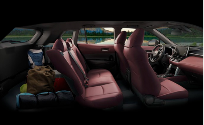 Toyota Corolla Cross thiết kế tối ưu khoang hành khách với hàng ghế sau tựa đầu có 3 vị trí, khoảng trống để chân đủ dùng, ghế sau có thể chỉnh ngả thêm 6 độ tạo được sự thoải mái cho người ngồi. Bệ để tay ở vị trí trung tâm với 2 ngăn đặt cốc, cùng nhiều hộc chứa đồ tiện lợi. Trần xe lớn, uốn cong và có cổng trời tạo được không gian thoáng.